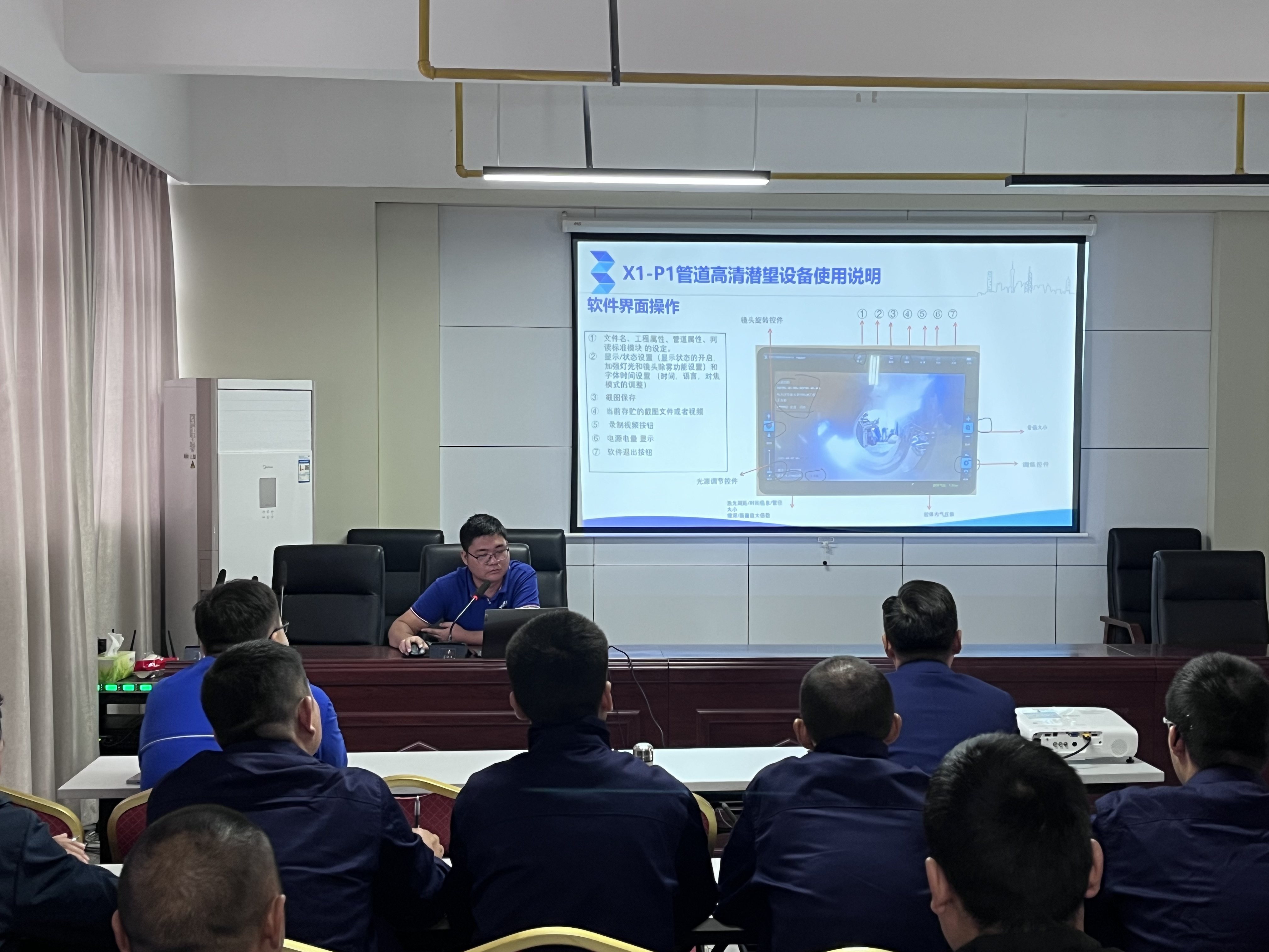 本次培訓采用“理論+實操”相結合模式。理論授課環(huán)節(jié),授課老師圍繞CCTV管道檢測機器人工作原理、設備結構組成、操作規(guī)范及安全注意事項等內容,通過PPT展示和應用案例開展系統授課。參訓員工全神貫注,詳細記錄操作要點,積極與老師互動交流,對這位“新伙伴”有了初步的理論認知。