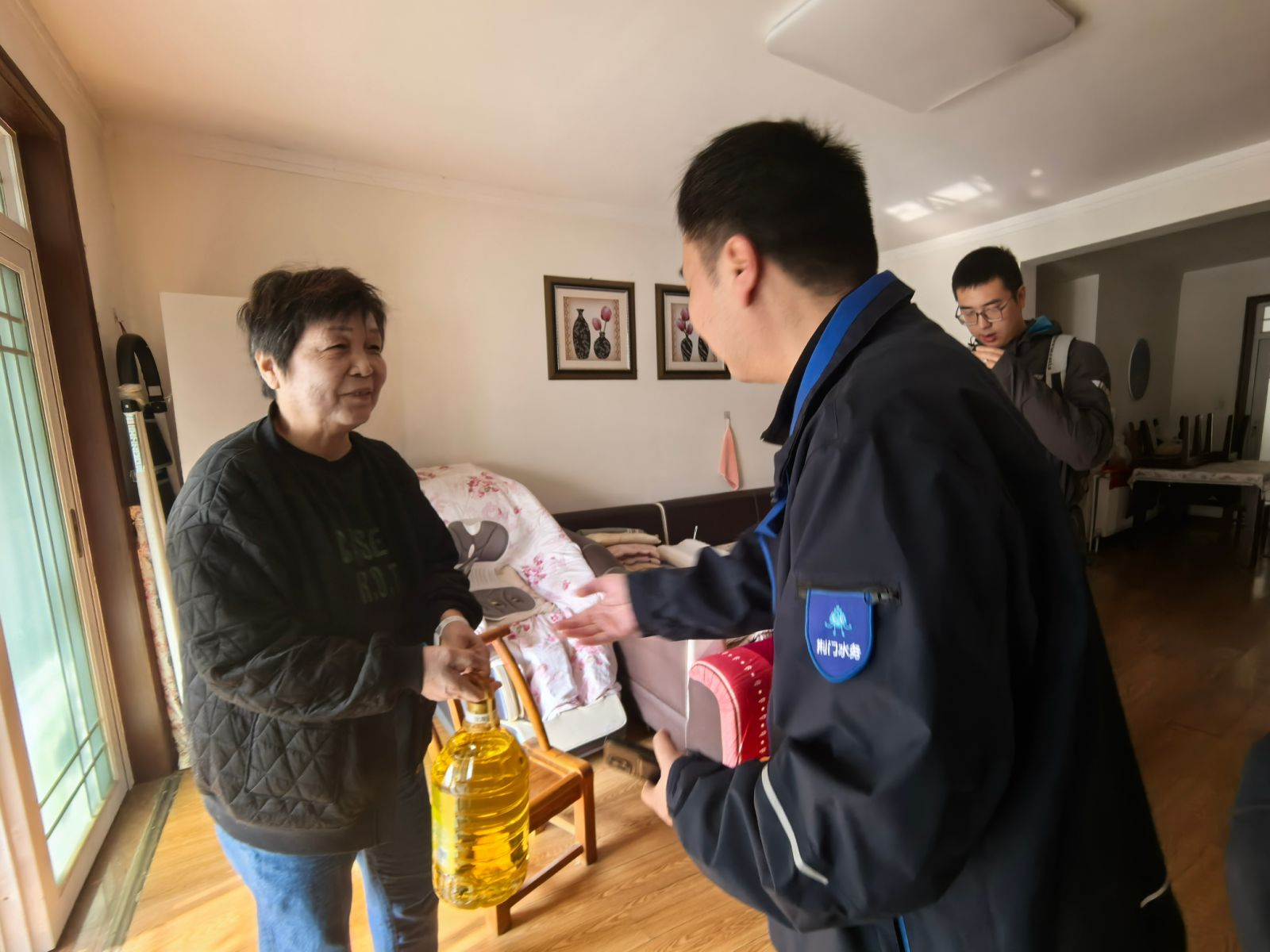 活動(dòng)尾聲,慧泉房產(chǎn)黨支部黨員代表與社區(qū)工作人員攜帶暖心禮包上門探望高齡及困難老人。走訪中,慰問(wèn)人員細(xì)致詢問(wèn)老人身體和生活狀況,志愿者主動(dòng)留下聯(lián)系方式,承諾提供持續(xù)關(guān)注與幫助,讓組織的關(guān)懷直抵人心,為重陽(yáng)佳節(jié)增添濃濃暖意。